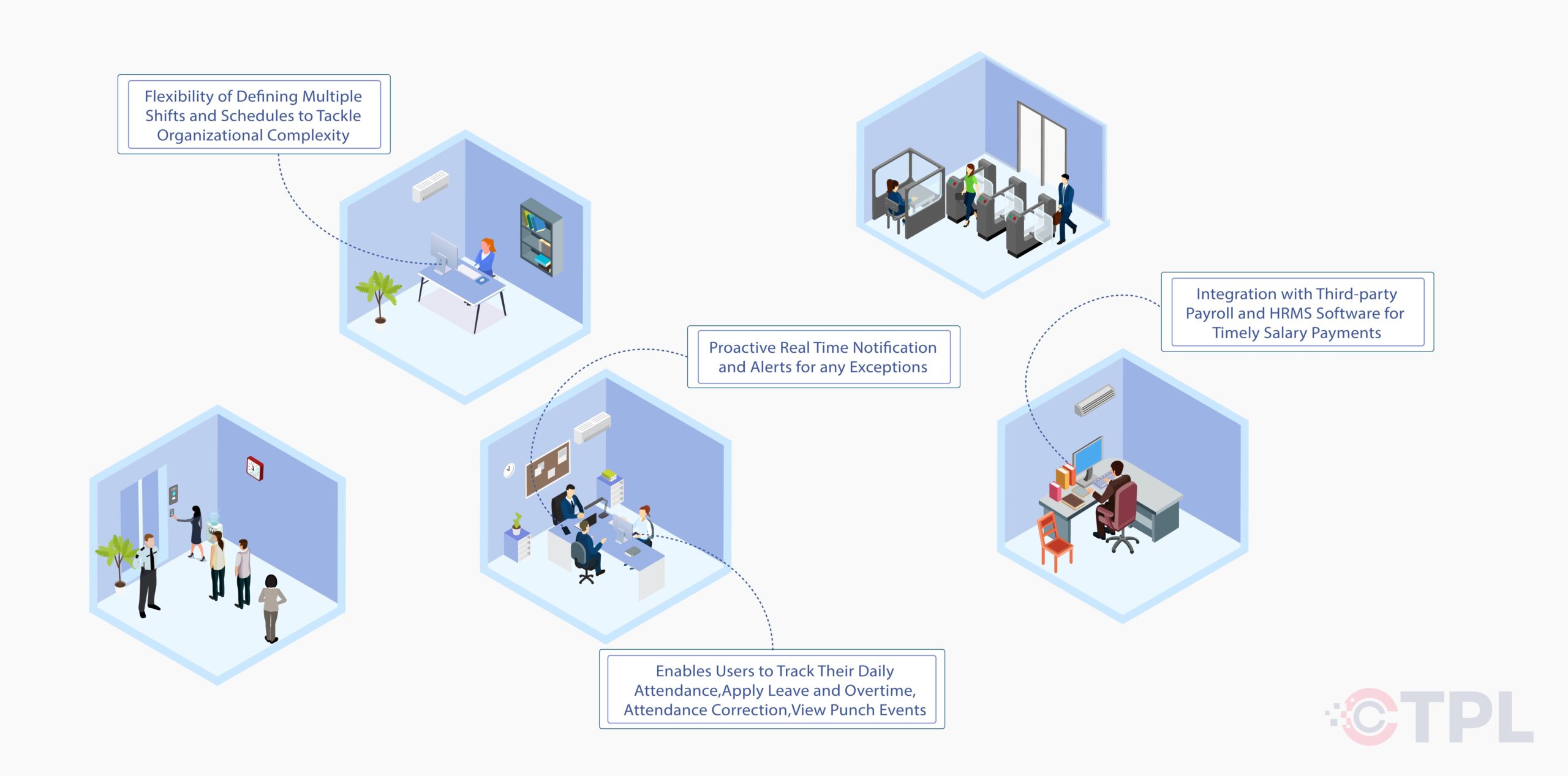 - Payroll Integration: Integrate seamlessly with third-party payroll software for smooth and timely salary processing based on accurate attendance data.